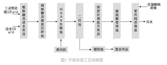 (1)提標+提量。增加1萬m3/d工業污水,部分指標從二級直接提升至一級A,升級改造難度大。