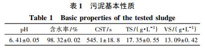 實驗所用污泥取自上海市閔行水處理運營有限公司產生的濃縮污泥,取回后立即放入 4 ℃冰箱中儲存。實驗污泥的基本性質如表 1 所示。