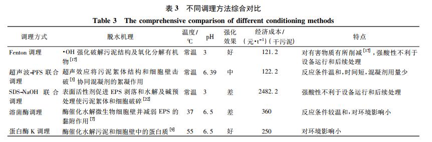 2. 5 不同調理方法強化污水廠污泥脫水性能的綜合比較